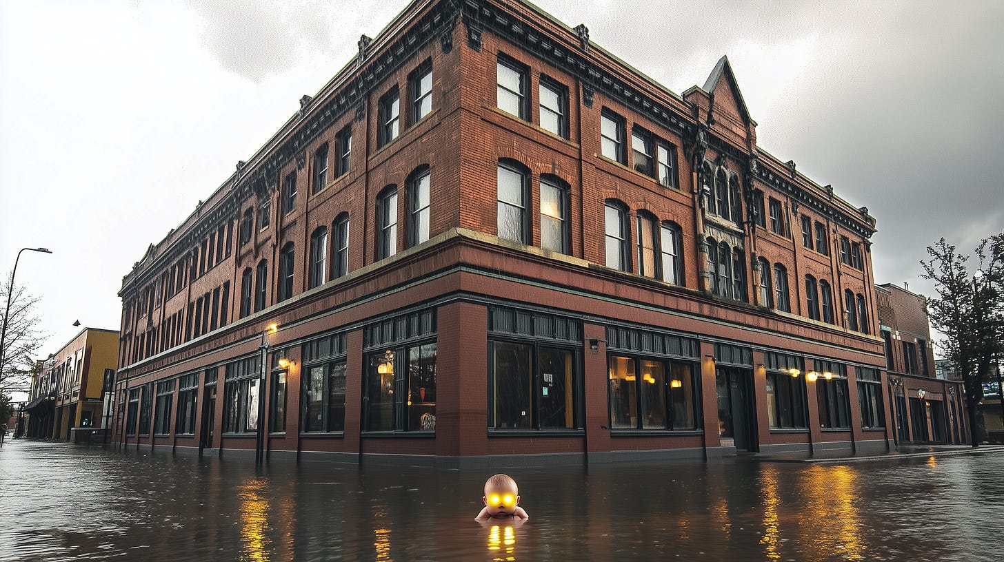 How the hell am I going to bike through this? he thought. It looked as though the bay had risen into the town. That’s not possible. No, he thought. This place would be flooded if it were.